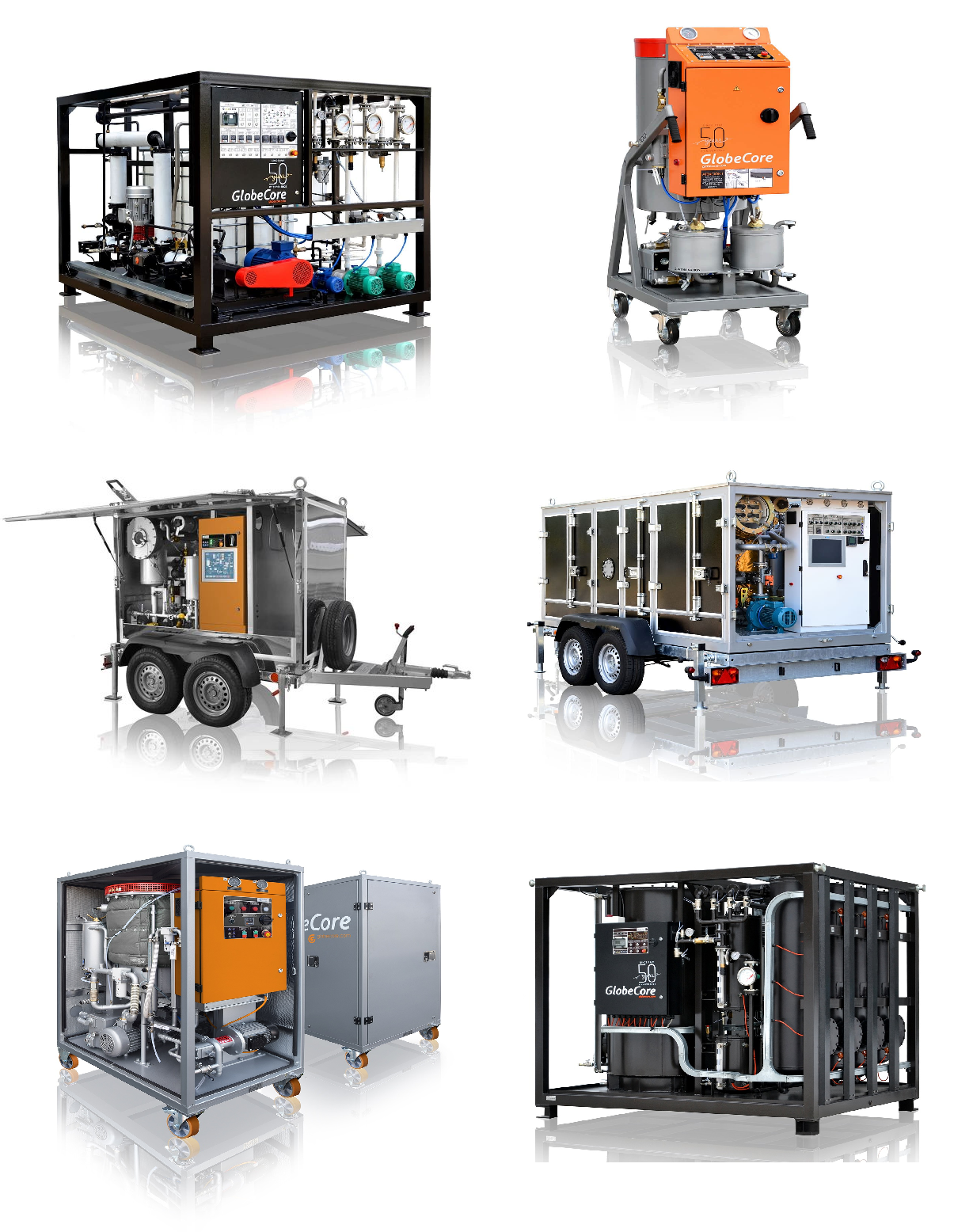 GlobeCore là nhà sản xuất thiết bị công nghiệp chuyên sâu về xử lý dầu, hóa chất và phân bố sản phẩm liên quan, nổi tiếng toàn cầu. Công ty tập trung vào các công nghệ tinh lọc dầu truyền thống như lọc, tách khí, làm sạch dầu cách điện, xử lý dầu biến tính và sản xuất nhũ tương bitum. Sứ mệnh của GlobeCore là bảo vệ môi trường và kéo dài tuổi thọ thiết bị qua việc đảm bảo dầu và hóa chất sử dụng trong hệ thống luôn tinh khiết và đạt tiêu chuẩn kỹ thuật cao.